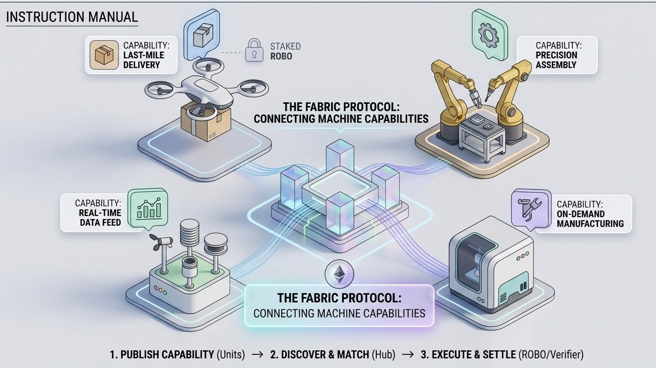 Fabric isn't building a better robot; they’re building the "tracks" for the robotic railway. They call it Machine Commerce. Imagine a world where any device—a drone, a 3D printer, a weather station—can "publish" what it’s capable of to a public, decentralized network. Instead of apps talking to APIs, machines discover and contract each other directly.