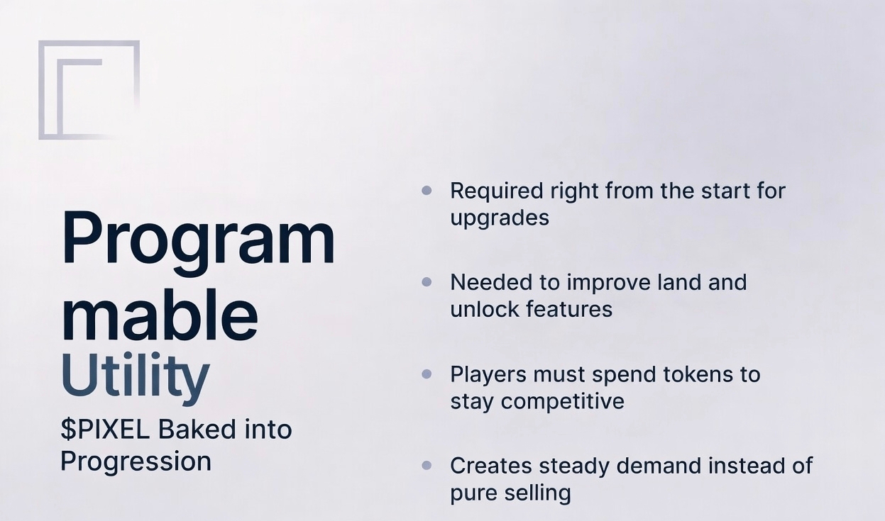 Right from the start PIXEL is baked into progression. You need it to unlock better upgrades, improve your land and access stronger features. If you want to stay competitive and keep earning decently, you can not just hoard everything you gotta spend some back. That simple loop already creates steady demand instead of constant sell pressure.