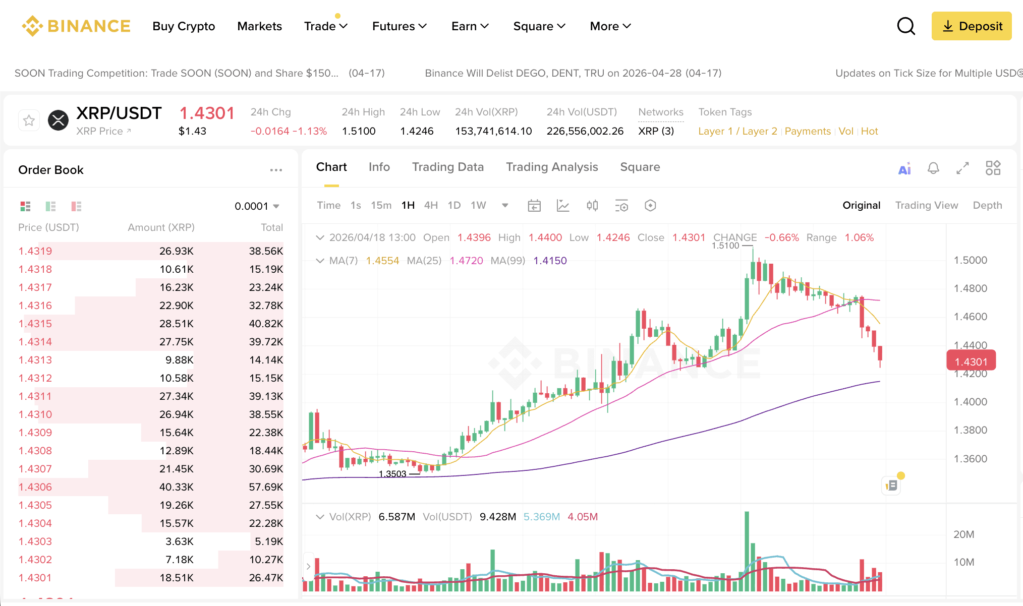 XRP: $1.4506 (-0.52%)