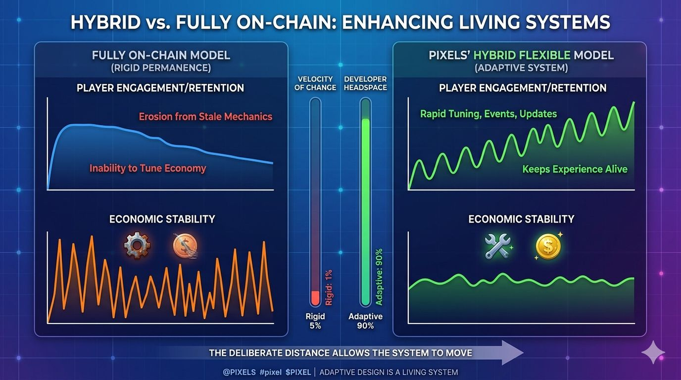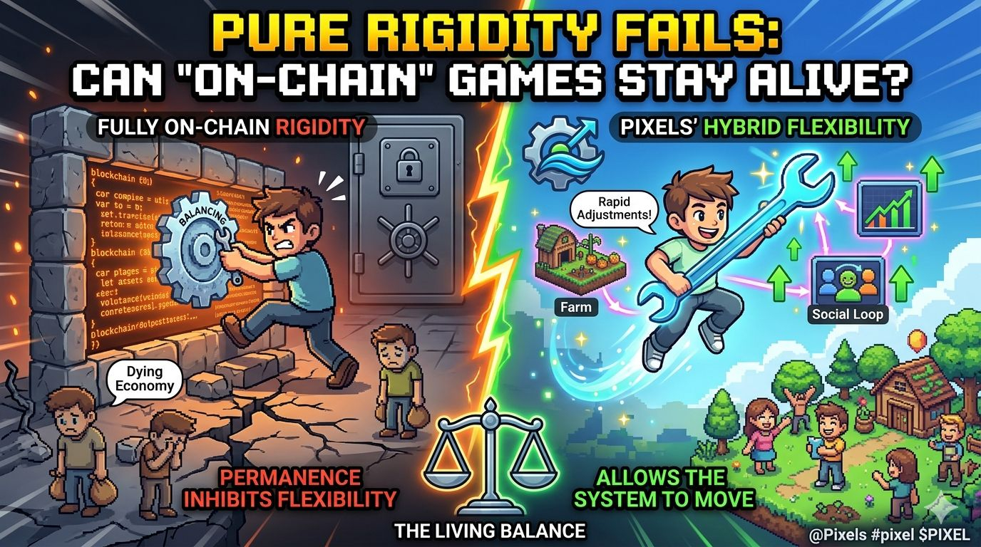 I keep wondering if a game can stay flexible when too much of it is on-chain.in theory, putting everything on-chain sounds ideal.🤷More transparency. More permanence. Less reliance on a central authority.