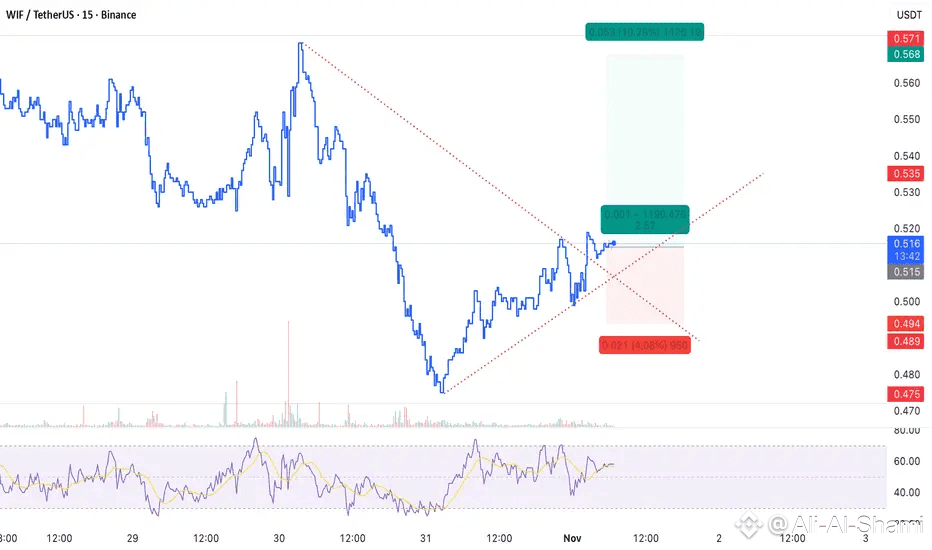 تشير الرسوم البيانية على TradingView إلى احتمال حدوث انعكاس صعودي — لقد كسر WIF وتدًا هابطًا أو قناة ويبدو أنه يشكل قيعان أعلى وارتفاعات أعلى.