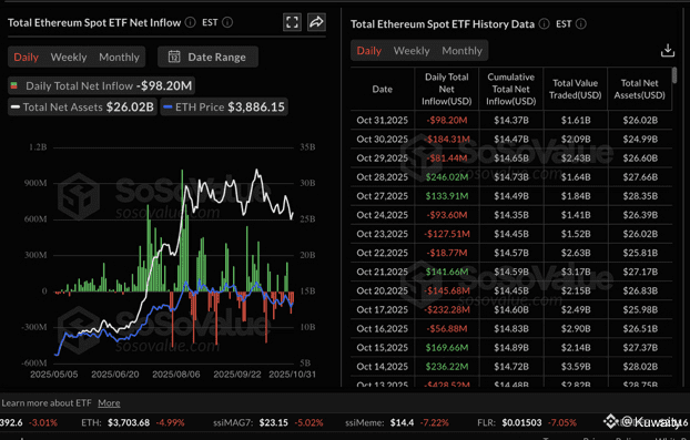 في غضون ذلك، شهد الإيثريوم تدفقات خارجة صافية تقارب 98 مليون دولار يوم الجمعة، مما يمدد السلسلة الهبوطية لليوم الثالث المتتالي. شهدت صناديق الاستثمار المتداولة المدرجة في الولايات المتحدة تدفقات خارجة بقيمة 184 مليون دولار يوم الخميس و81 مليون دولار يوم الأربعاء.