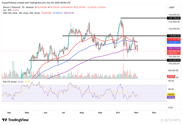 إذا قام المستثمرون بتقليل تعرضهم للمخاطر بشكل متزايد، فقد يتسارع الانخفاض السائد نحو 102,000 دولار، وهو سعر القاع للبيتكوين في أكتوبر.