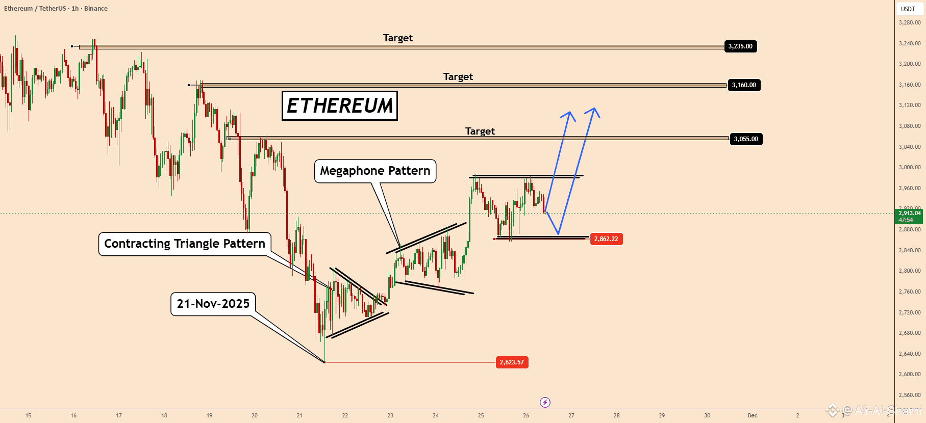 في 21 نوفمبر 2025، اختبرت الإيثريوم منطقة دعم قديمة جدًا بالقرب من مستوى 2623، حيث كان لديها أيضًا زخم صعودي قوي.