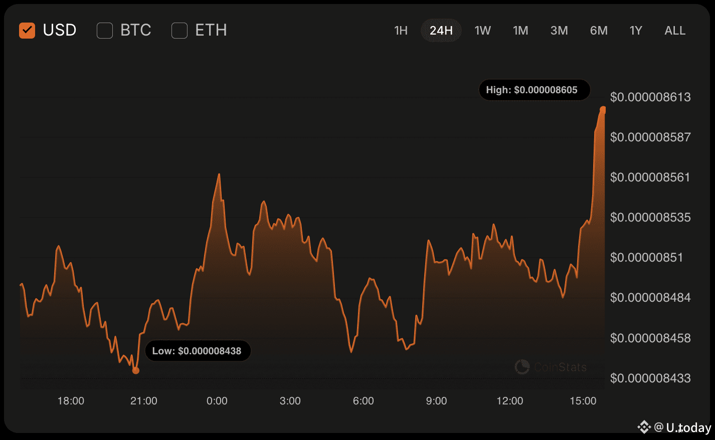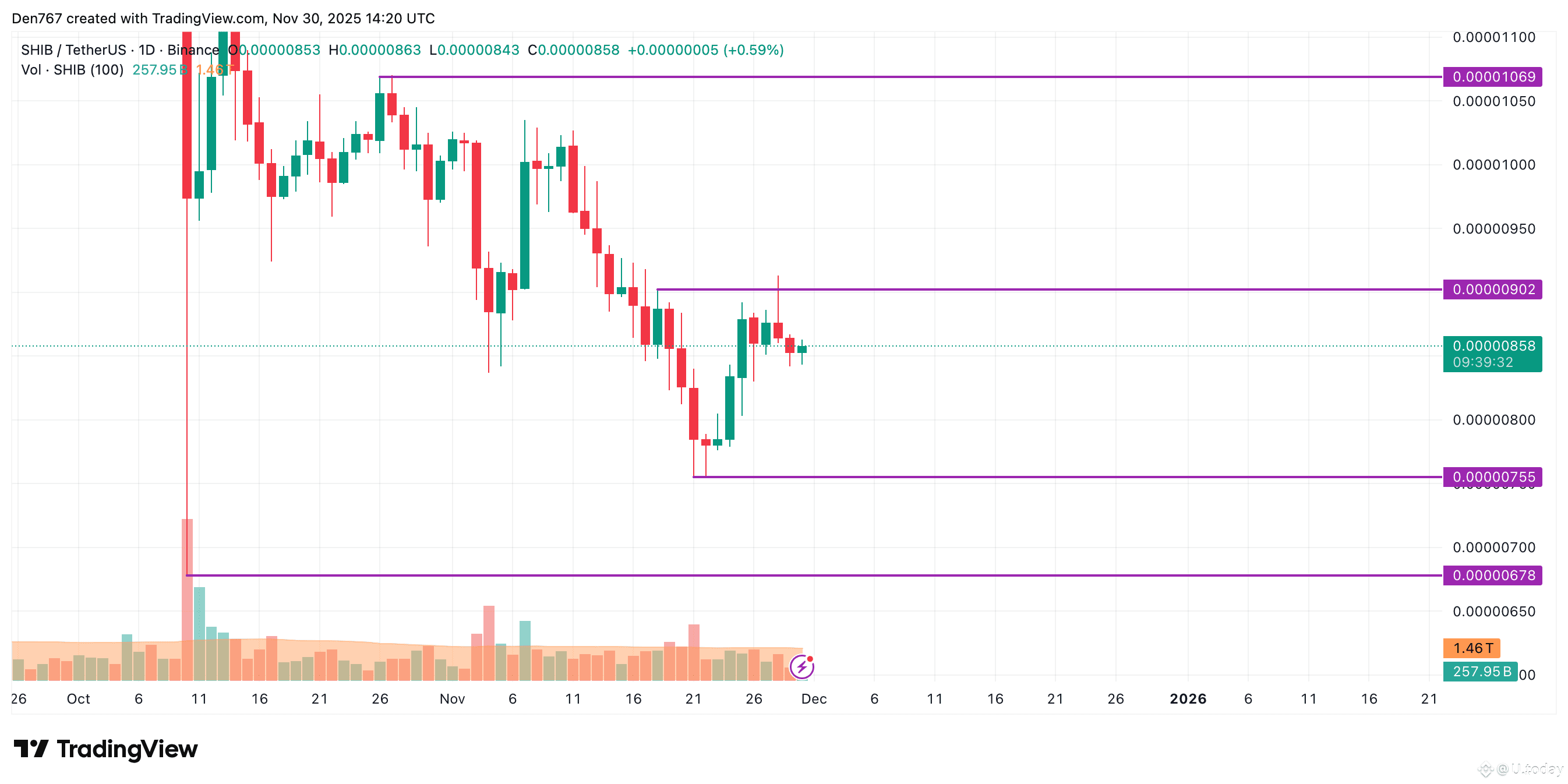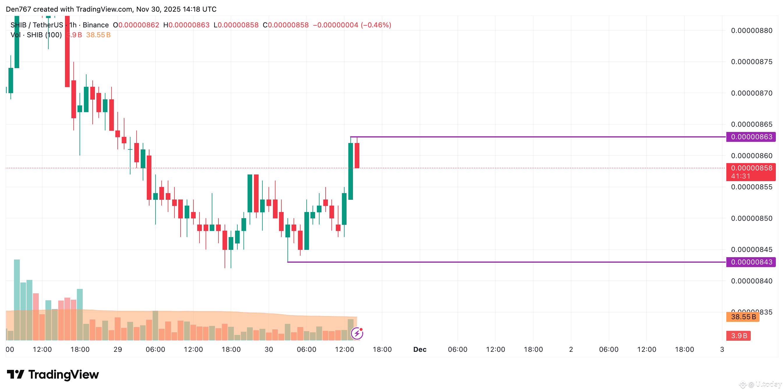 On the hourly chart, the rate of SHIB has set a local resistance of $0.00000863. If the daily bar closes near that mark or above, the upward move is likely to continue to the $0.00000870 range.