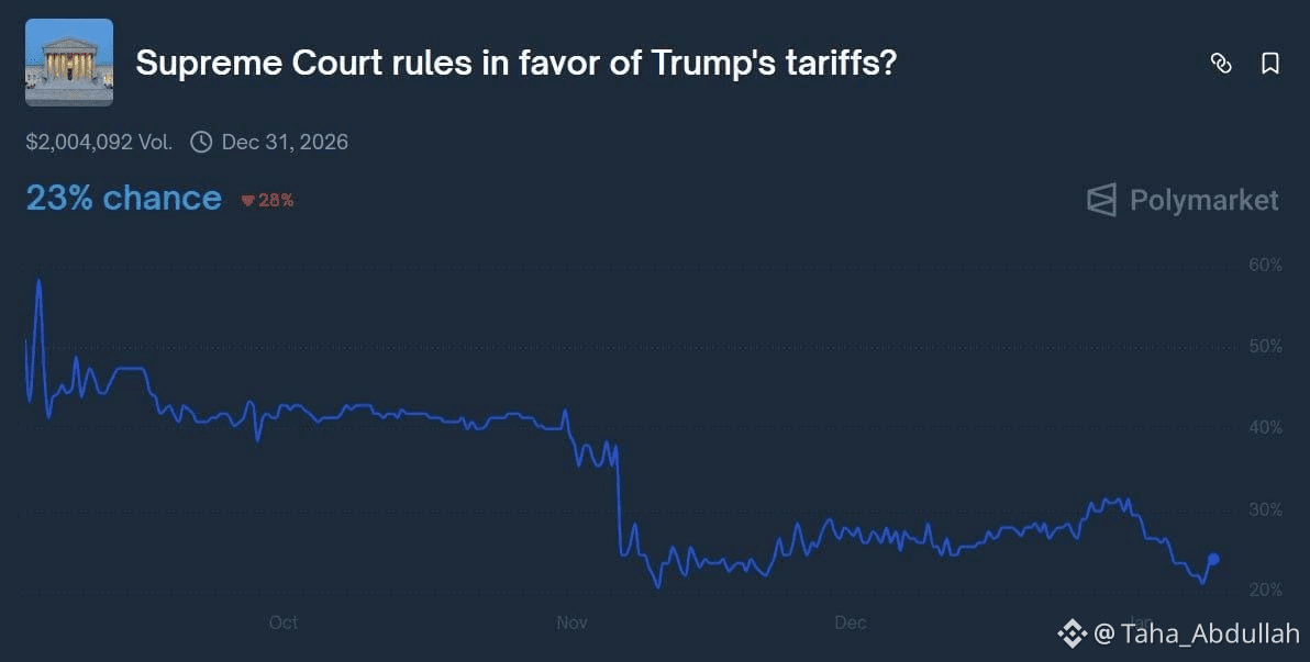 تُقدّر الأسواق احتمالية حوالي 77% بأن تُعتبر التعريفات غير قانونية.