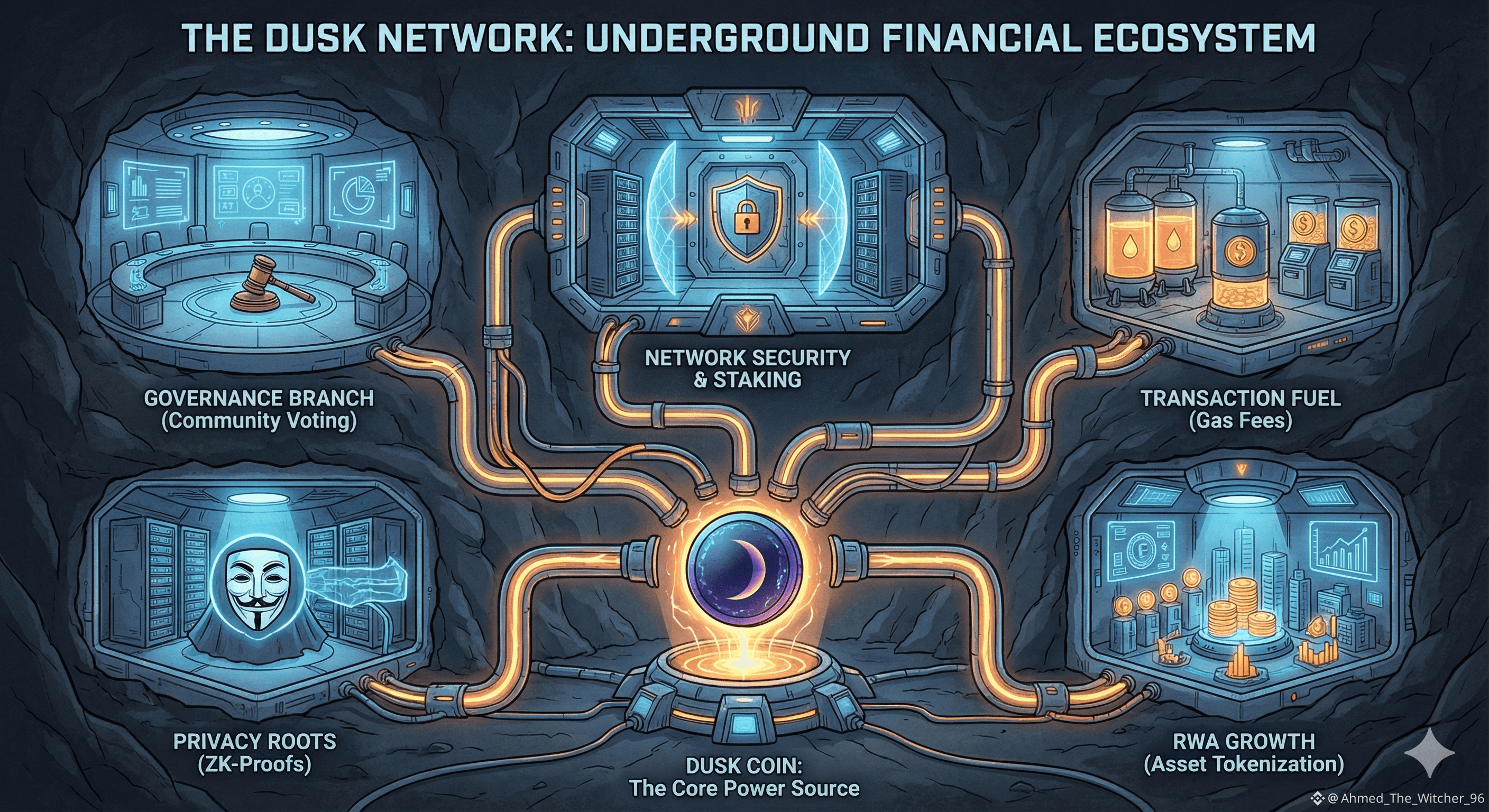 تعتمد البنية التقنية لـ Dusk Foundation على تقنيات تشفير متقدمة، وفي مقدمتها إثباتات المعرفة الصفرية، التي تسمح بإثبات صحة معلومة دون الإفصاح عنها. هذه التقنية تمكّن الشبكة من دعم معاملات مالية معقدة، بما في ذلك إصدار وتداول الأصول المرمزة، ضمن بيئة تحافظ على الخصوصية المؤسسية. وبهذا، يقدم Dusk نموذجًا عمليًا لكيفية توظيف التشفير المتقدم في خدمة الاقتصاد الحقيقي، بدل الاكتفاء باستخدامات تجريبية محدودة.