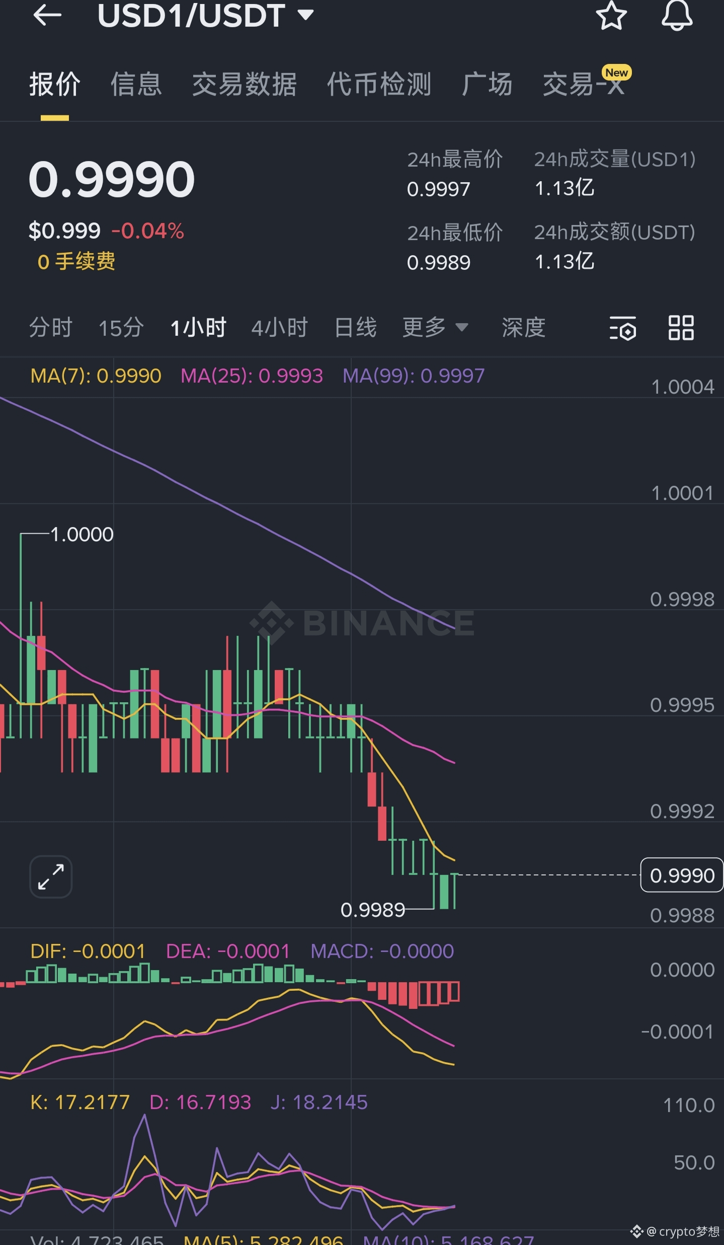 理财活动初期,USD1 曾出现明显溢价,一度显著高于 1 美元锚定价格,目前已经回落至0.9989左右位置,如果你在高点买入,那就可能有点难受了。但考虑到最后几天抛压过去后应该会慢慢回到正常价位,所以大家不需要挤兑,毕竟usd1是具备合规性不容易脱瞄的。