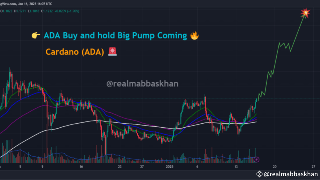 Cardano (ADA): Massiver Pump im Anmarsch! 🚀Cardano ist in Hochform! Mit einem Preis von 1,12 USD hat ADA wichtige Widerstandsniveaus bei 1,02 USD und 1,05 USD durchbrochen, was auf einen starken bullischen Ausbruch hindeutet. Alle wichtigen EMAs (25, 50, 100, 200) sind perfekt auf einen Aufwärtstrend ausgerichtet, und das steigende Volumen bestätigt, dass die Bullen die volle Kontrolle haben.🔥🔥