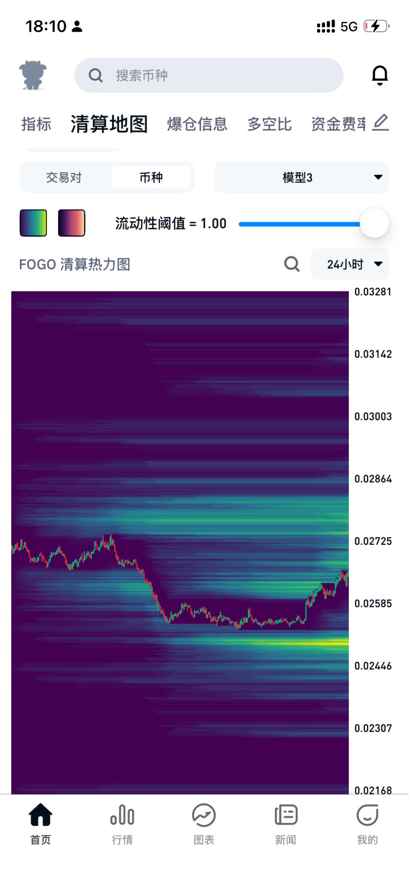 • 下方死亡谷(强磁场): 在 $0.0228 - $0.0246 这一带,赫然亮起了一大片极其刺眼的明黄色!这意味着过去一周,有海量散户和大户把多单的强平价格设在了这里。