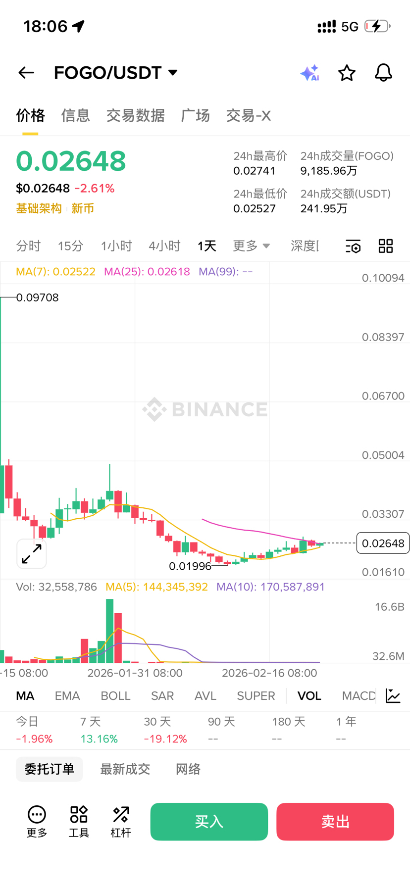 #特朗普新全球关税 #美国伊朗对峙 目前 FOGO 正在 $0.0265 附近反复摩擦,看似跌不下去,甚至让不少短线交易员产生了“筑底反弹”的错觉。