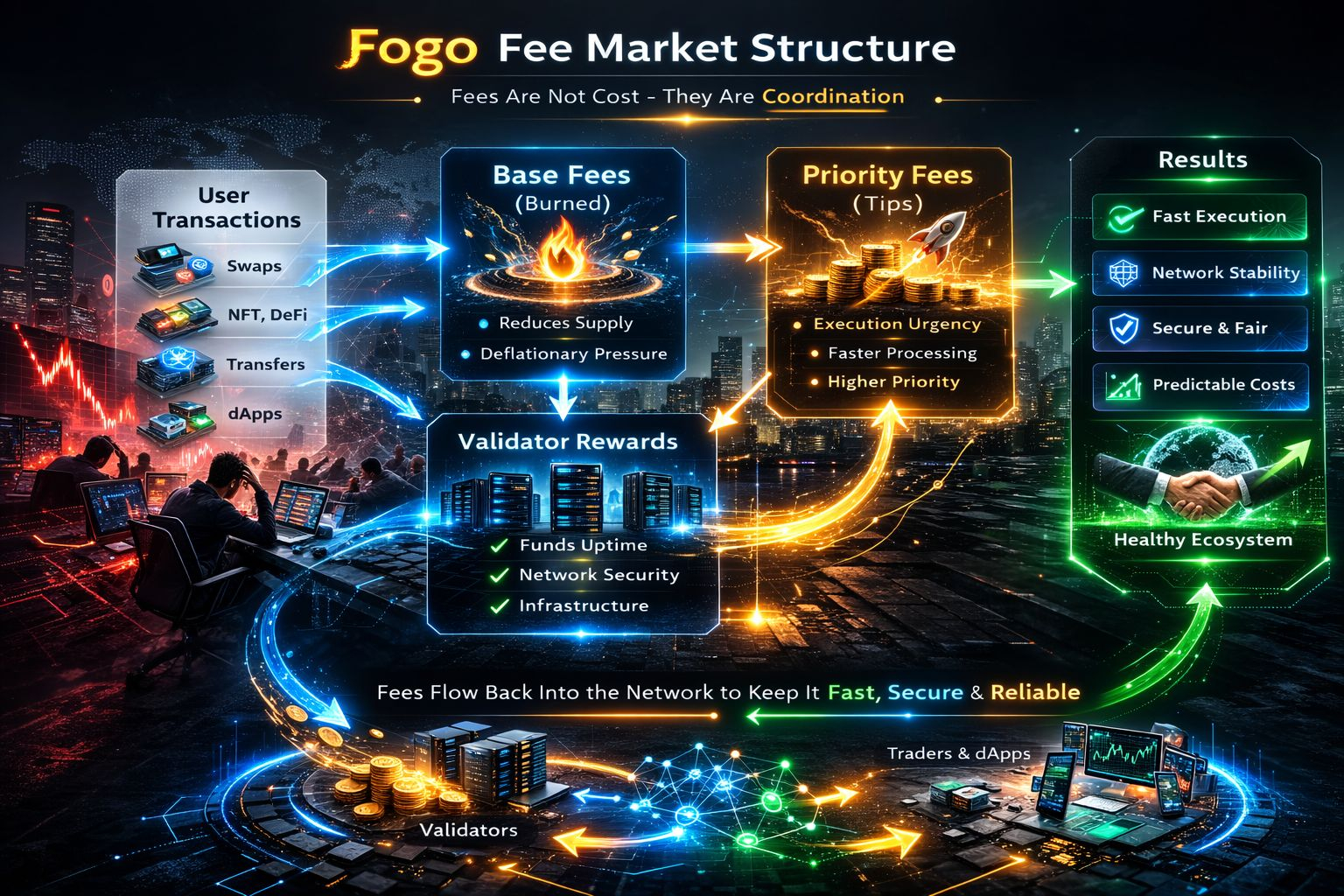 Fogo ist die Art von Kette, die dir zuerst aus dem offensichtlichen Grund auffällt. Sie ist schnell, sie fühlt sich scharf an, sie vermittelt dir diesen sauberen Eindruck eines Systems, das von Menschen entwickelt wurde, die besessen von der Ausführung sind. Aber Geschwindigkeit ist der einfache Teil, über den man sprechen kann, weil sie in Zahlen und Screenshots passt. Die eigentliche Frage ist, was passiert, wenn der Markt aufhört, höflich zu sein.