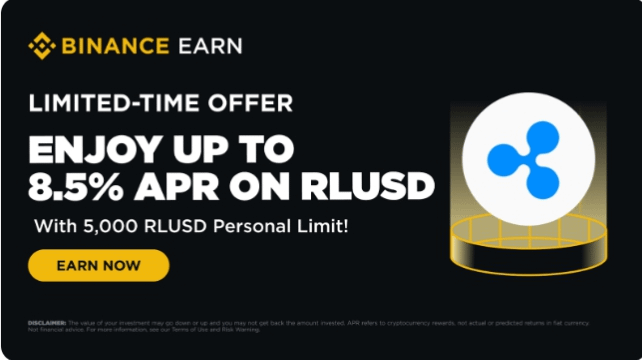 Binance continues to expand its passive income opportunities with an exciting new offer on RLUSD Flexible Products. Starting from 27-02-2026, users can earn up to 8.5% APR by subscribing to RLUSD under Binance Earn’s Flexible Products category.