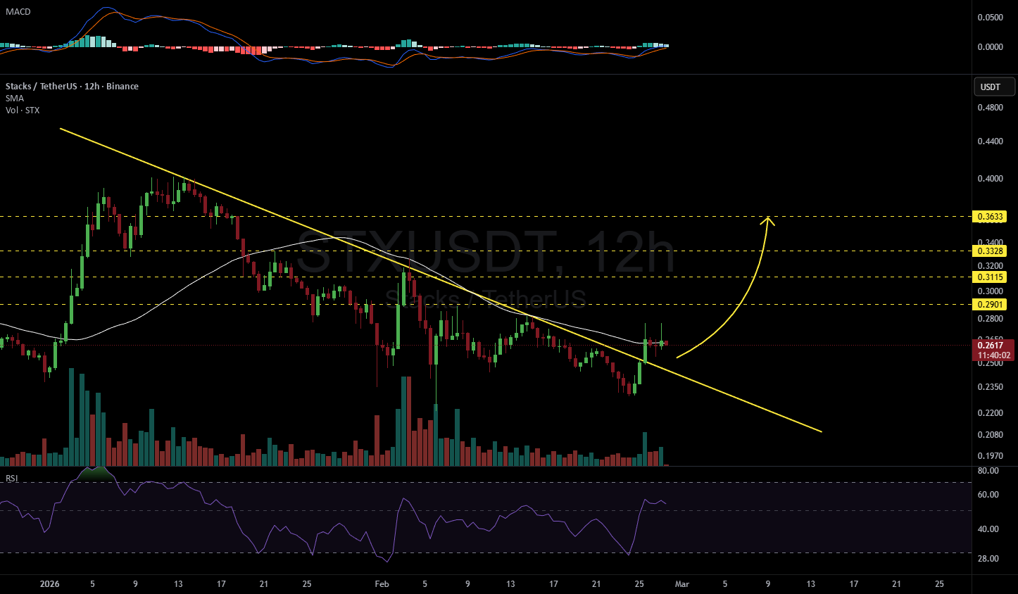 The Stacks $STX chart is heating up! After a period of consolidation, $STX has officially broken above a key descending resistance line on the 12H timeframe. With the price currently battling the SMA 50, the bulls are looking to flip this level into support for a sustained rally. 📈