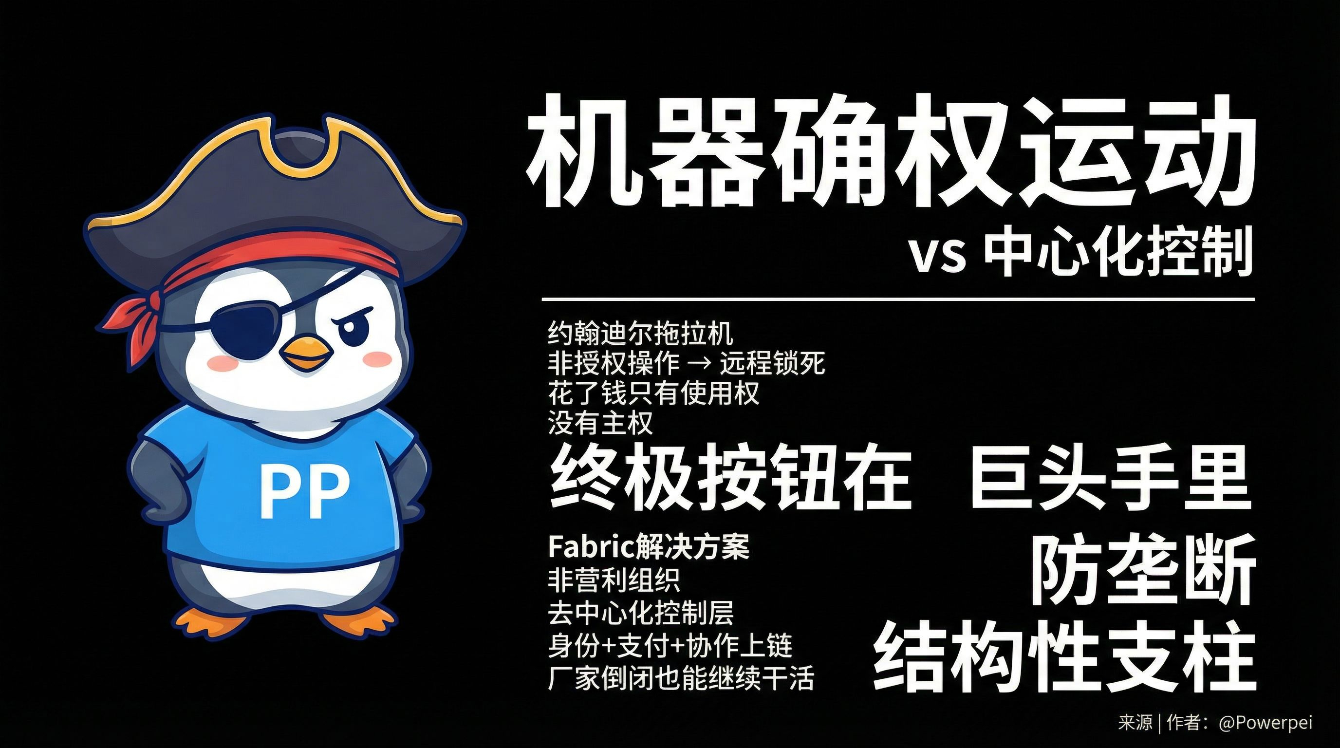 Selbst wenn der Hersteller pleitegeht oder die Cloud offline ist, solange das Fabric-Netzwerk noch besteht, kann dein Roboter weiterarbeiten und Geld verdienen.