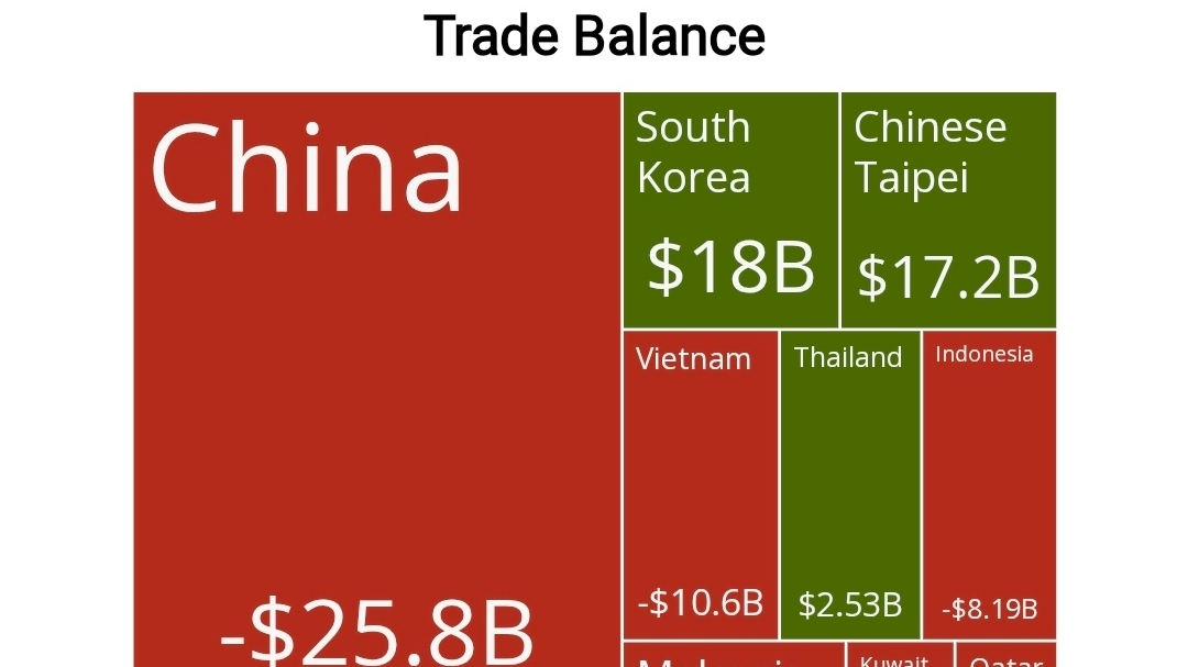 In Südostasien verzeichnet Japan ebenfalls Defizite mit 🇻🇳 Vietnam (-10,6 Milliarden USD) und 🇮🇩 Indonesien (-8,19 Milliarden USD).