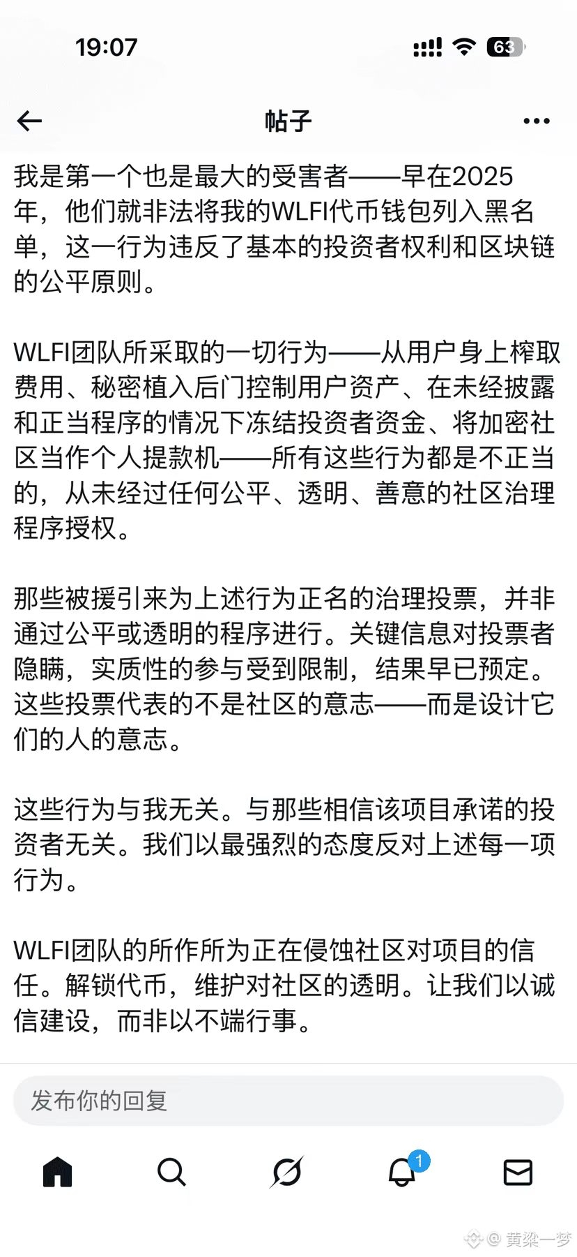 今天不聊金银比,不聊日韩指数。说个比K线图还刺激的事——孙宇晨和WLFI互撕了。项目方和早期投资人反目成仇,互相指着鼻子骂。