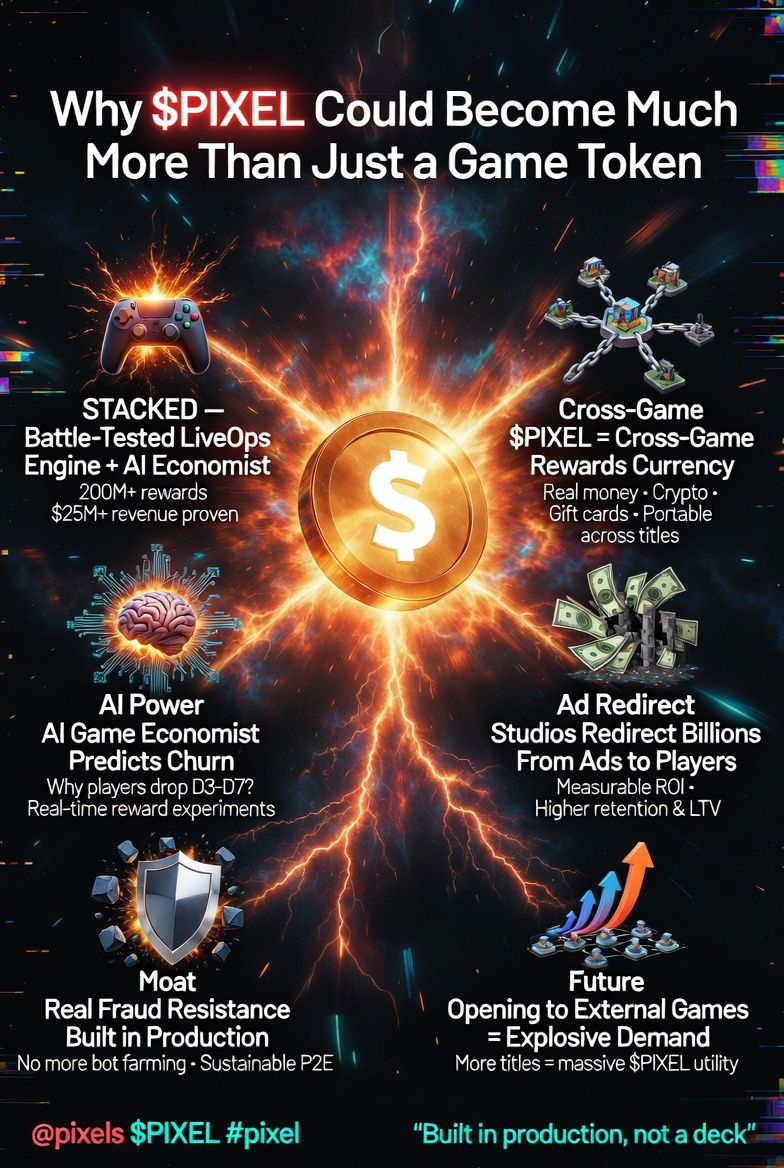The part that really hit me is how PIXEL sits right at the center of it. It’s no longer locked to one title. It’s becoming the cross-game rewards currency. When a studio uses Stacked, they can reward real engagement with PIXEL that players can actually use across multiple experiences. That changes everything for holders. Suddenly your bag isn’t just tied to how well one game performs. It’s tied to how many games join the ecosystem and how well the rewards actually work.