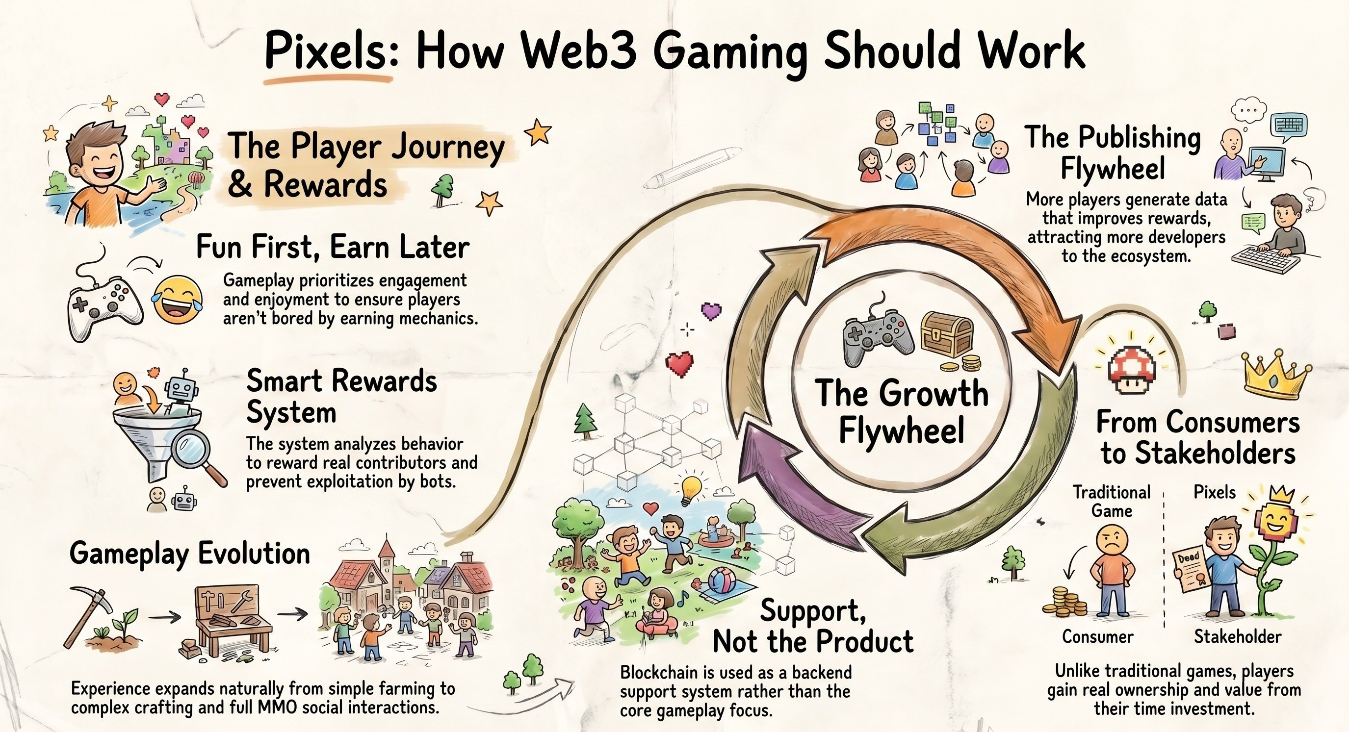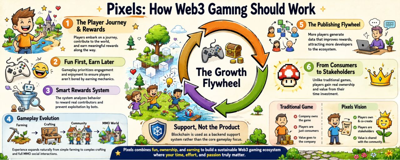 In traditional games, most of the revenue goes to companies and players have no real ownership. Pixels aims to change that by giving players ownership and sharing value with them. Blockchain is used as a support system rather than the core product. The team clearly focuses on building a strong game first and then gradually integrating blockchain features.