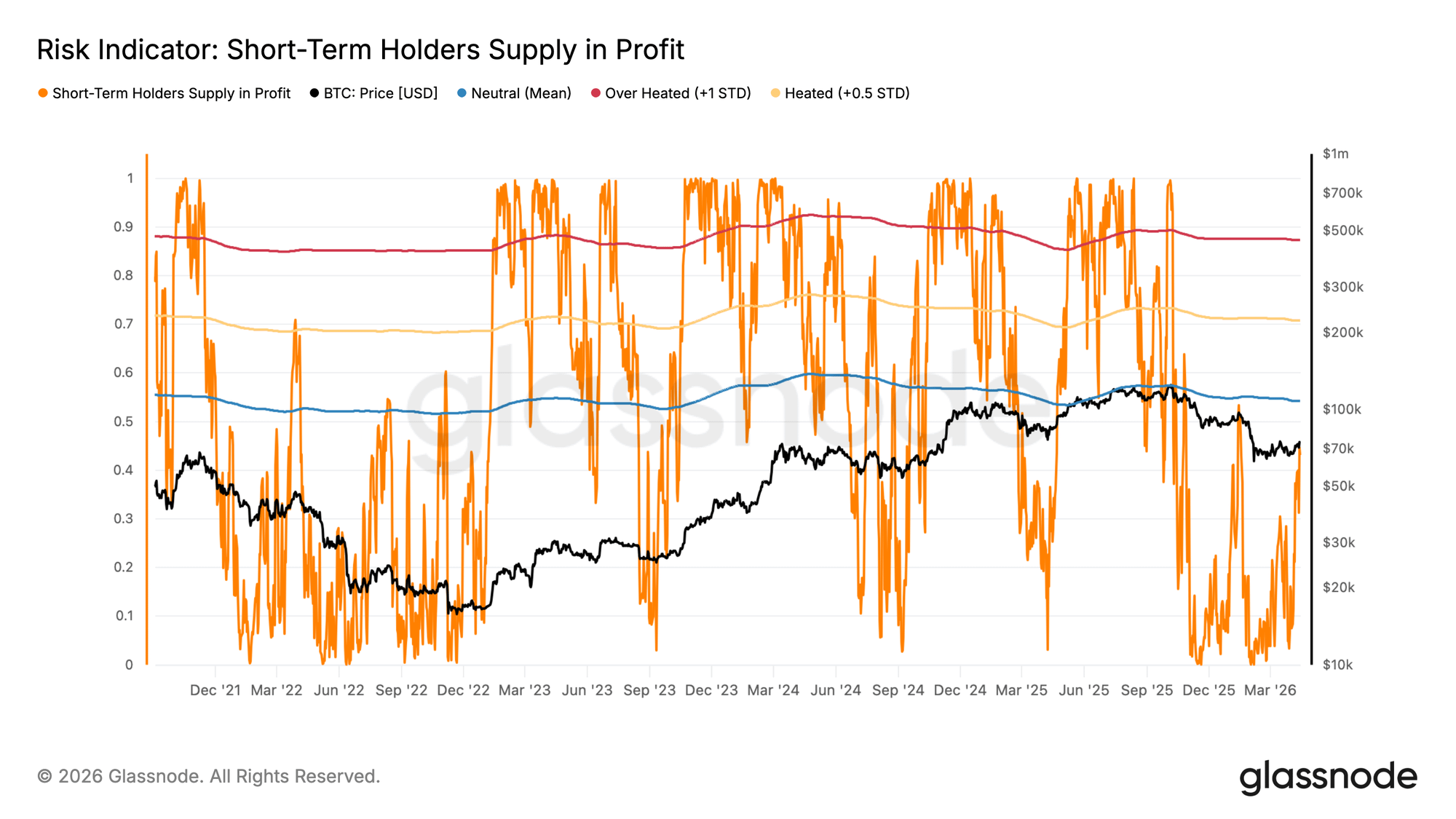 Bitcoin: Kurzfristige Inhaberangebot im Gewinn. Quelle: Glassnode
