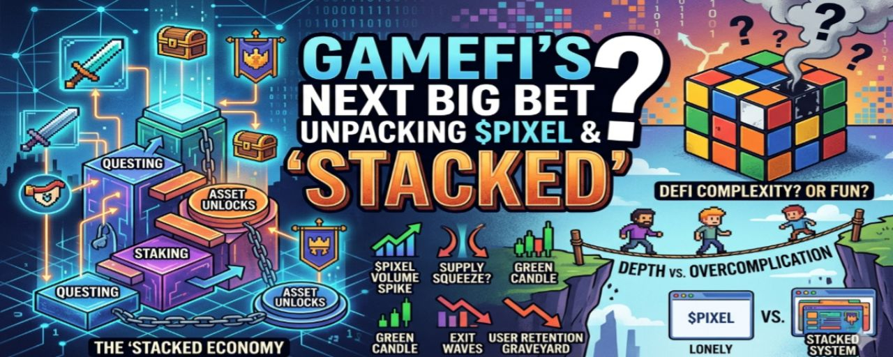 Which gets me thinking: does adding another layer, calling it “Stacked,” really fix anything? Or is it just throwing another coat of paint over the same cracks? Here’s what always jumps out: most of these GameFi coins—it’s pixeed—aren’t hurting for new users. That part is easy. Drop some quick incentives, toss out a “gamma quest” for a weekend, and you get a crowd. The problem is keeping them around. That’s the graveyard of every play-to-earn dream. Been there myself—log in, grab free stuff, dump the token, slam the tab shut. It starts out fun, then it just feels like a daily commute. “Oh, great, here’s my five sweaty tokens for the day—time to go stoke the liquidity pool, yay.”