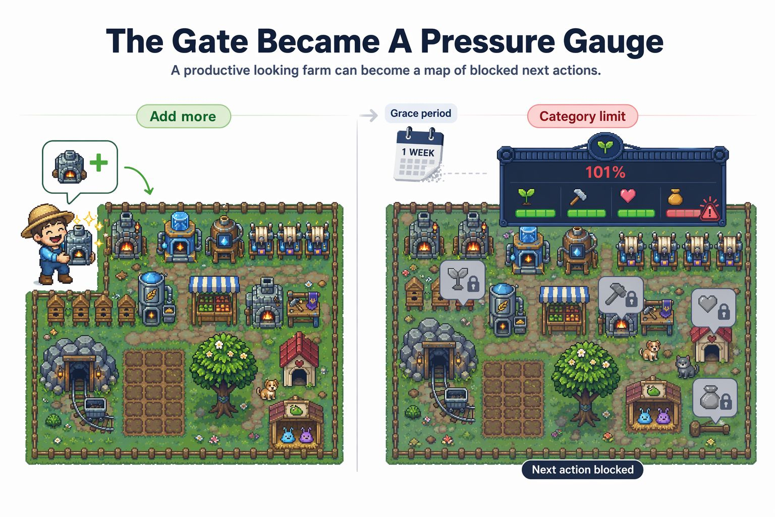 That part matters more than I expected. If I am losing time to extra walks, dead planting windows, restart failures, and constantly checking whether I pushed a category too far, then the land is underperforming no matter how rich it looks. Maybe on paper it still looks fine. In actual play it feels bad, and once it starts feeling bad, I already know I built the wrong kind of “efficient.”