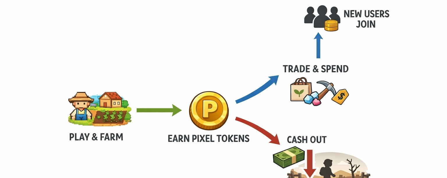 Not from the farming mechanics. Not from the pixel art. It comes from other people buying in. That’s the uncomfortable truth. The system still leans on new money entering the ecosystem, even if it does so more quietly than its predecessors.