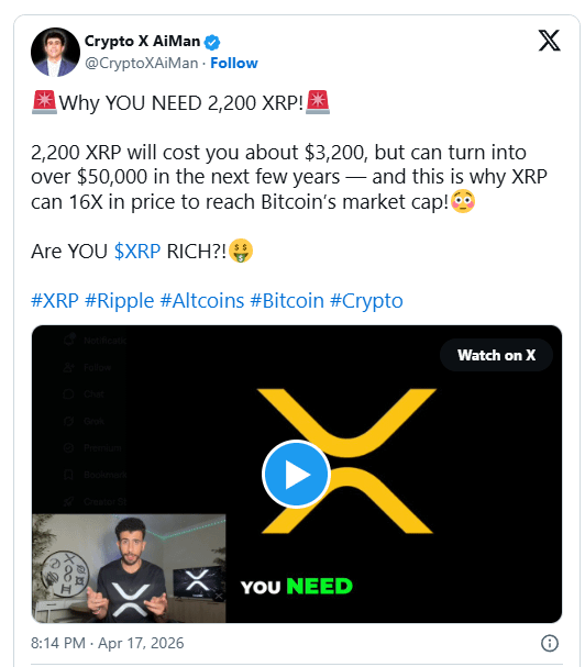 Insgesamt präsentiert der Beitrag ein strukturiertes Argument, das sich auf Eigentumsgrenzen, prognostiziertes Marktwachstum und langfristige Haltestrategien konzentriert, wobei 2.200 XRP als grundlegendes Ziel für Investoren positioniert ist, die an einer höheren Teilnahme interessiert sind.