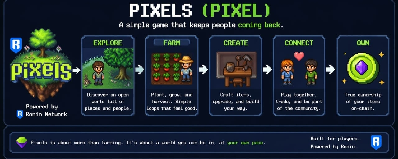 I didn’t notice Pixels in any meaningful way the first time. It looked like something I already understood before even touching it. Farming loops, small actions repeating, a quiet little world doing its own thing. I’ve seen that structure too many times, inside and outside crypto. It didn’t feel worth slowing down for.