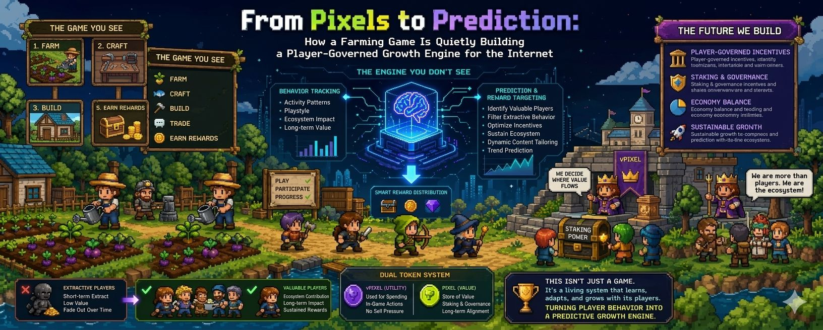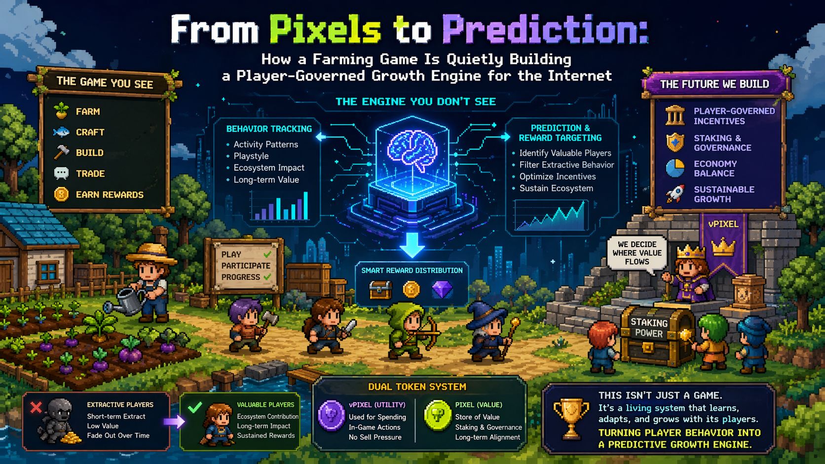 what I find most interesting though is the bigger direction this hints at. Pixels does not feel like it is optimizing a single game economy. it feels lIke it is experImenting with a framework where player behavior becomes input data for a larger growth system. almost like the game is the interface, but the real product is the engine learning behind it.