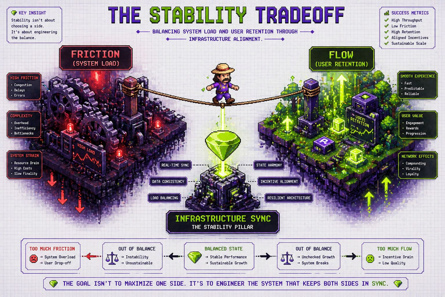 If a system is too laggy, users disengage (collapsing the economy). The "Sweet Spot" is a system that remains stable under insane growth. Pixels’ transition to a more robust LiveOps infrastructure is an attempt to turn stability into a product. When the infrastructure fades into the background, the user spends more on "Control over Time" $PIXEL rather than fighting the interface.