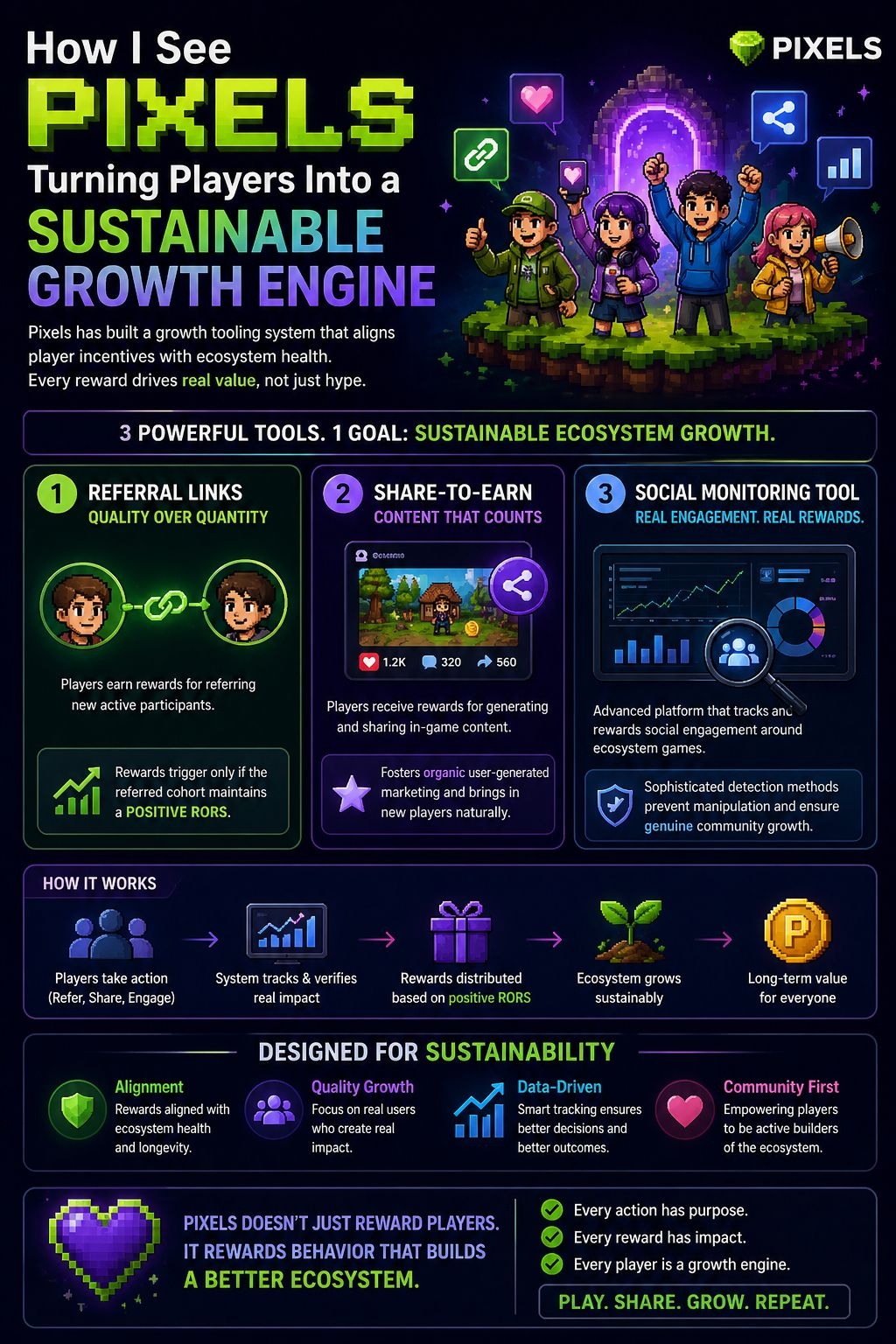 jab main Pixels ka growth model dekhta hoon, mujhe yeh clear lagta hai ke yeh sirf rewards system nahi hai yeh ek fully designed growth machine hai. Aur sab se interesting baat yeh hai ke yahan har reward blindly distribute nahi hota, balkay performance aur sustainability ke sath linked hota hai.