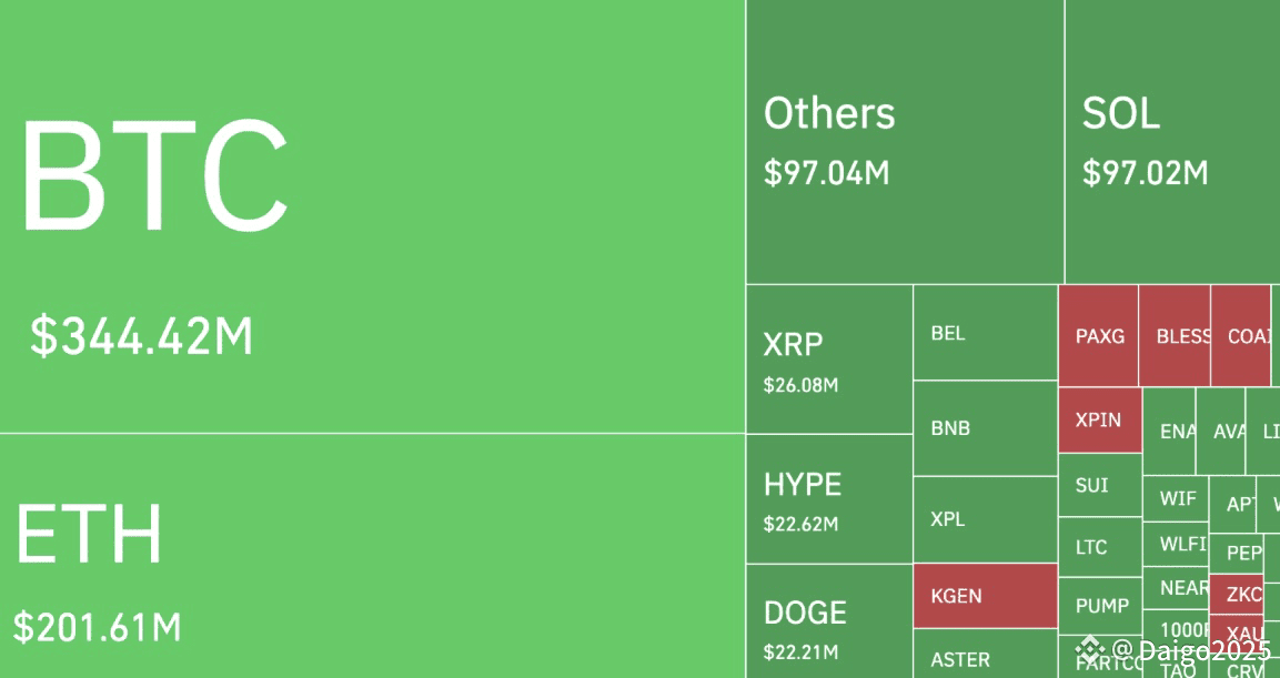 According to CoinGlass, almost 79% of total liquidations were long trades, affecting more than 307,000 accounts. The largest single hit was a $20.4 million ETH-USD long on Hyperliquid, a decentralized derivatives exchange that has quietly become one of the main engines of leveraged trading in crypto.Bitcoin accounted for roughly $344 million in losses, followed by Ether at $201 million, and Solana (SOL) at $97 million. XRP, dogecoin (DOGE) and other high-beta tokens each saw tens of millions more cleared from open interest.