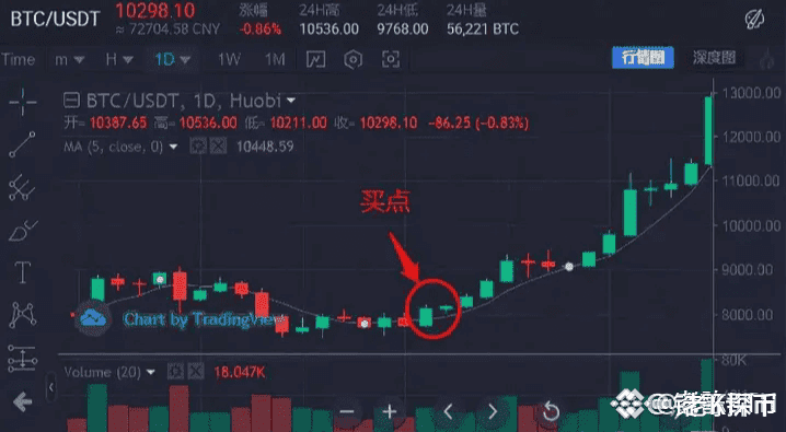 总的来说,可以这么认为,在上涨趋势的时候(牛市),逢币价回调5日线,即是加仓机会;是做多单的机会。