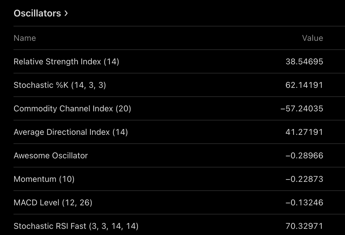 Relative Strength Index (RSI 14): 38.55, neutral but nearing oversold territory