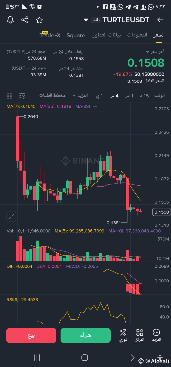 لكن السعر الآن قريب من منطقة دعم مهمة (0.14)، ومع RSI تحت 30، فاحتمال نشاهد ارتداد تصحيحي قصير المدى خلال الساعات القادمة.