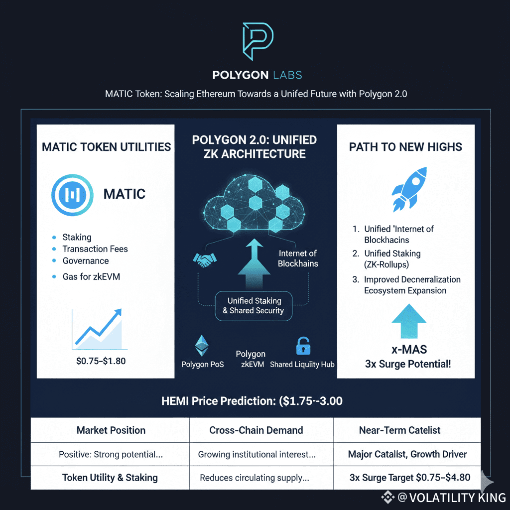 Polygon 2.0 marks a complete transformation. Instead of separate scaling products, all Polygon chains will operate under a unified ZK architecture, interlinked through shared liquidity and security. This creates an “Internet of Ethereum Chains,” where assets, messages, and liquidity move seamlessly. The introduction of a unified staking layer further amplifies MATIC’s value—validators will secure every Polygon chain simultaneously, compounding rewards and strengthening overall network security.