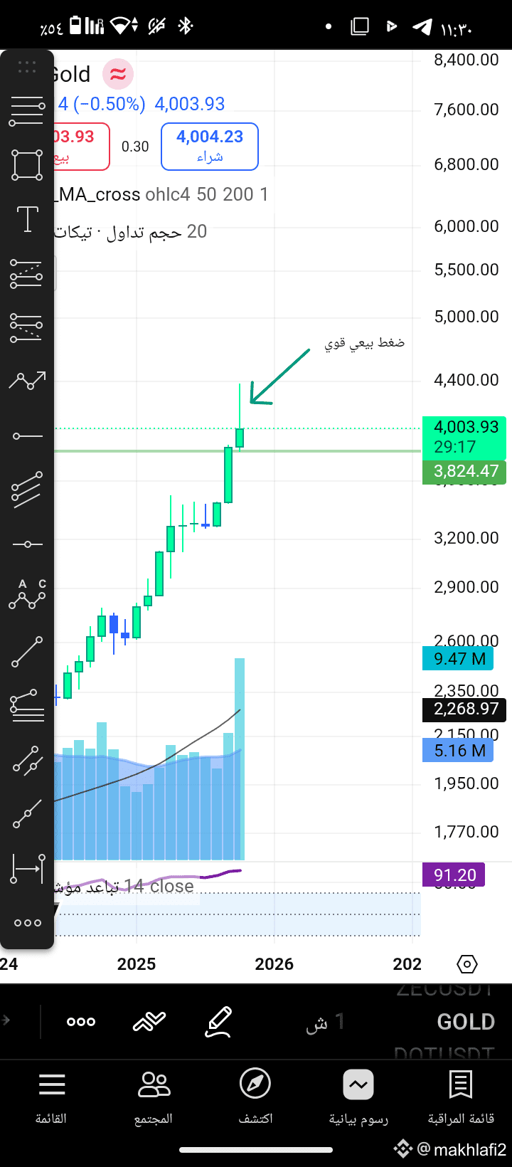 Afterward, gold faced a sharp decline, indicating strong selling pressure and the start of a corrective phase.