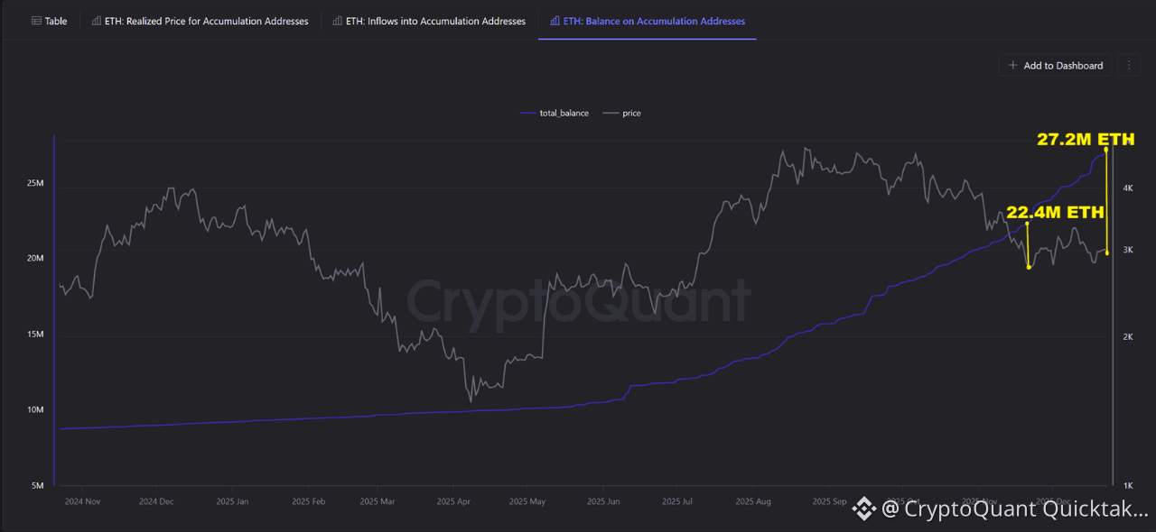 3️⃣Also, in the 3rd image, when we look at these whales' balances, we see that on 21 November 2025, the day the price touched this metric, they had 24.4 million ETH, and today, on 24 December 2024, they have 27.2 million ETH. This means that since the day the price touched this metric, these whales have accumulated more than 2.8 million ETH. This amount is 2.35% of the circulating supply.