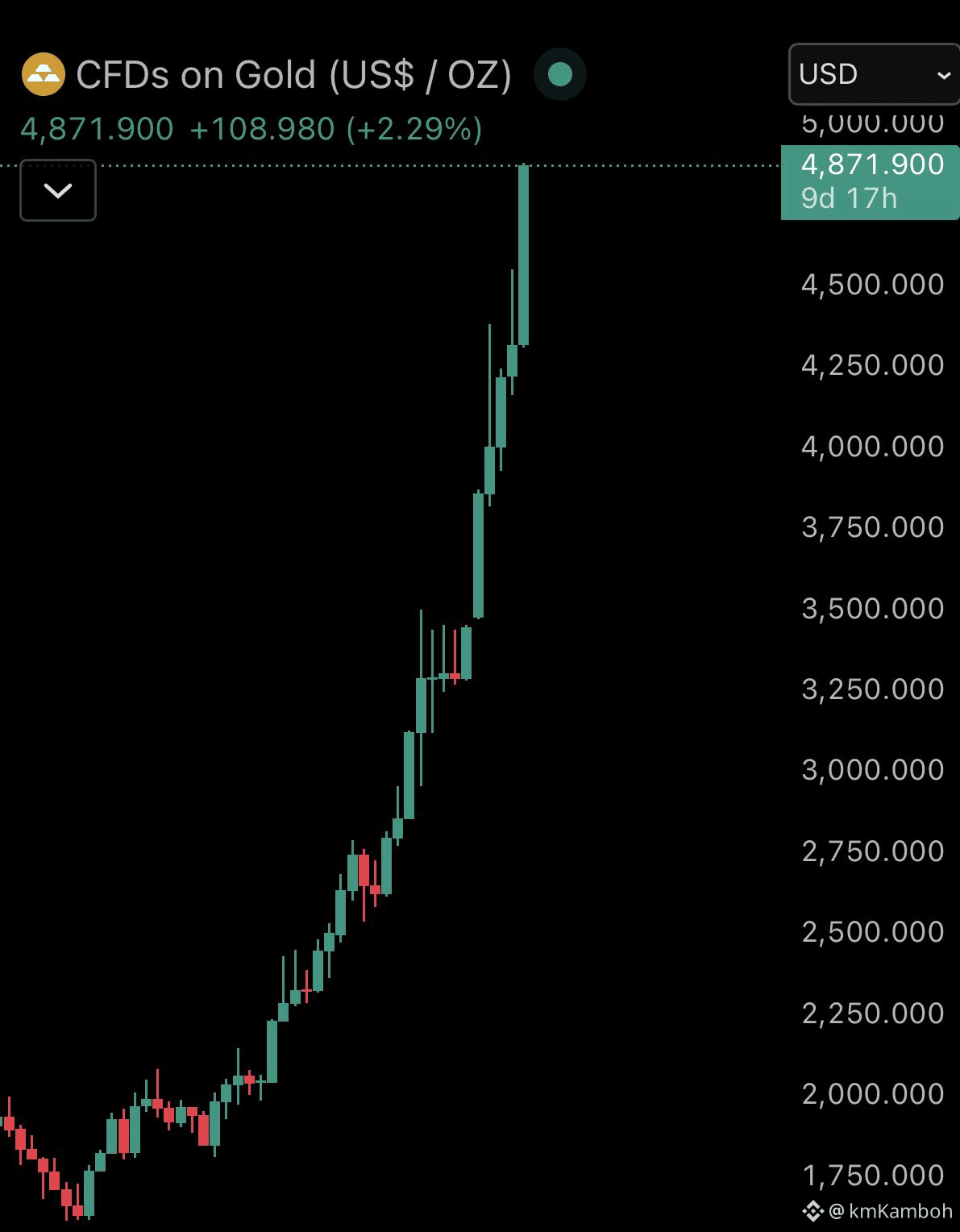 Big news! 🚨 Gold has reached a new record high of $4,875. In just 2 years, gold has added $19 trillion to its value, which is 10 times Bitcoin's total value.