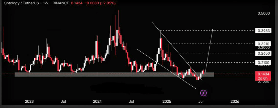ONT has broken above the weekly downtrend line, signaling a potential bullish shift in momentum. This breakout zone is a strong area for buyers to step in, making it a favorable entry point for a possible upward move because of the strong support.