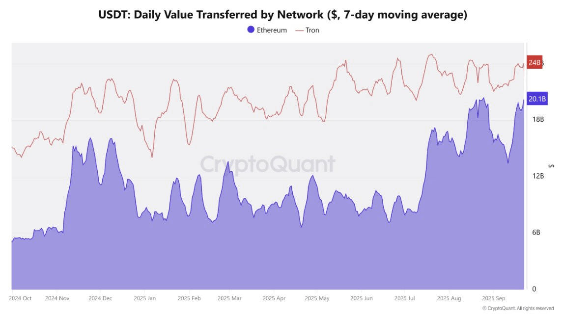 The TRON processes a significantly larger volume of USDT transfers daily than Ethereum. In comparison, TRON handles over 2.6 million daily transactions, a number six times higher than that of Ethereum. This demonstrates TRON's leadership in both transaction volume and total value transferred.
