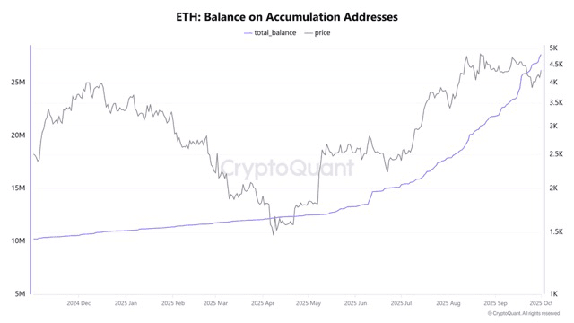 Ethereum balance in accumulation addresses. Source: CryptoQuant