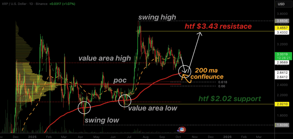 XRP maintains firm support above the 200-day moving average, signaling sustained buying pressure and reinforcing the prevailing bullish sentiment.