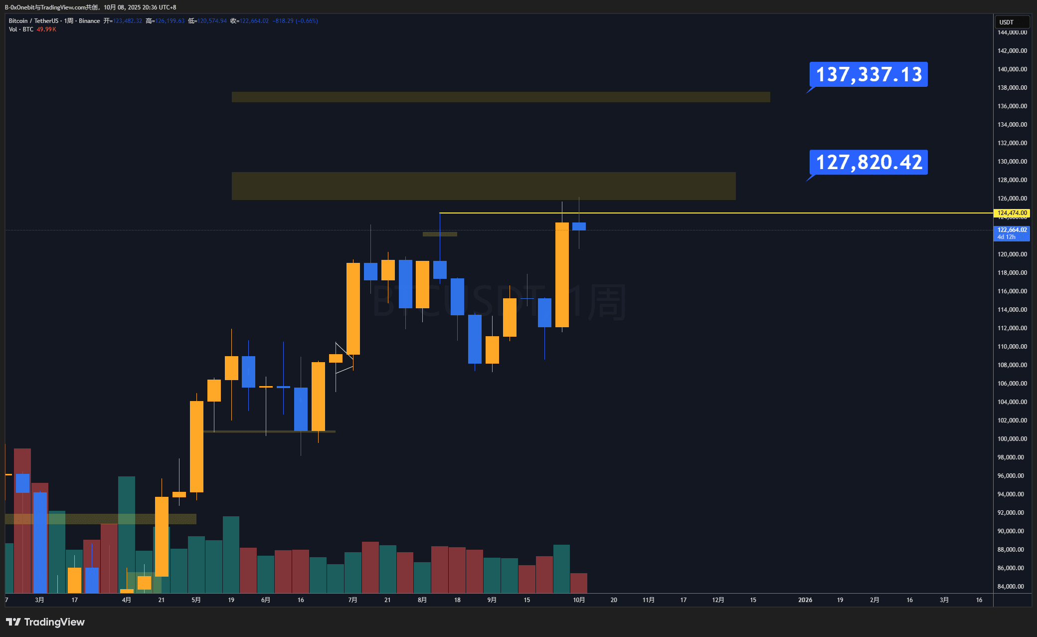 Resistance above: 122738/123406/124300/125000