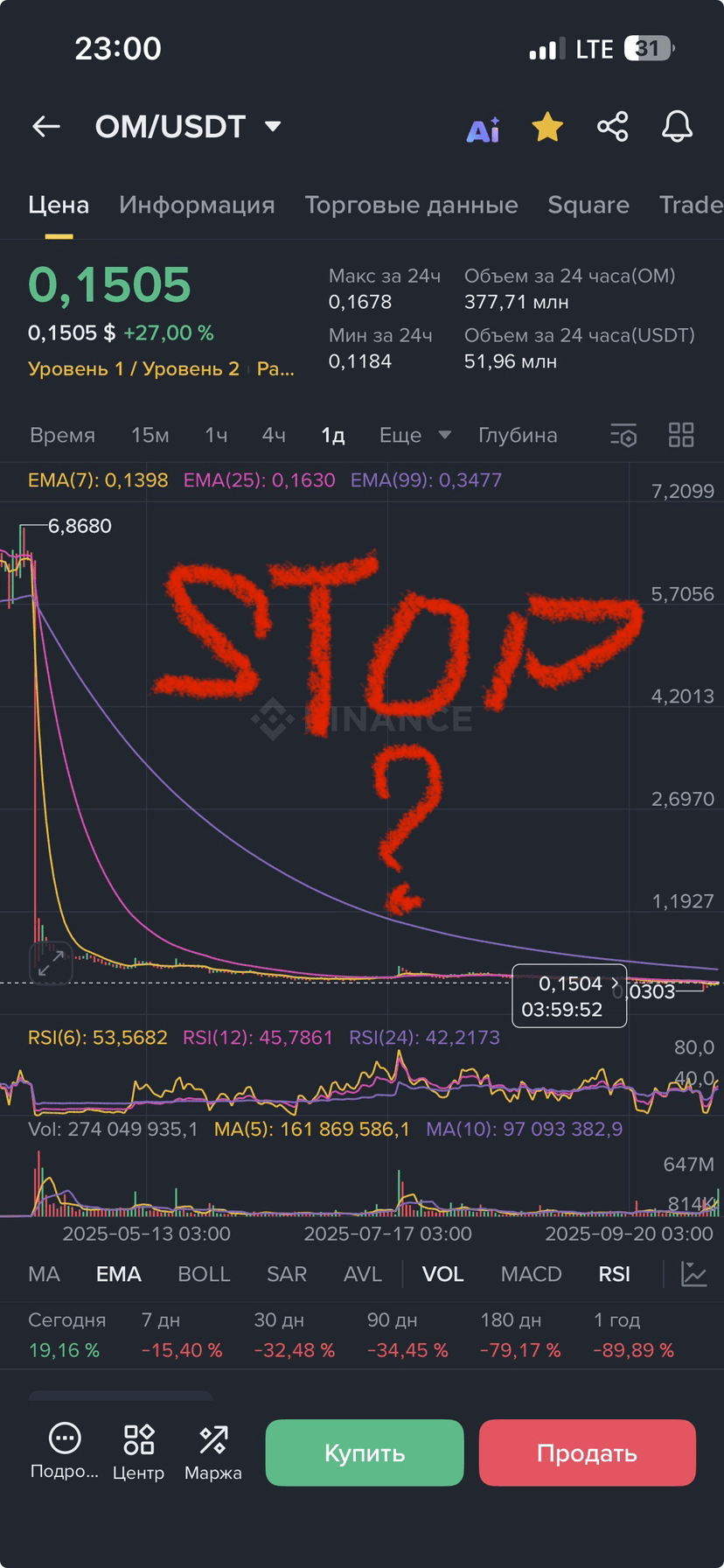 The OM coin (Mantra Chain project) is showing a noticeable spike today — +26% in 24 hours, trading around $0.15 after a deep pullback. Trading volume — ~$380 million, indicating an active recovery of interest from speculators.