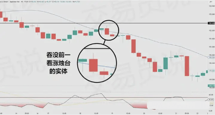 2. Engulfing pattern: shows strong momentum reversal, confirming the importance of the RSI signal.