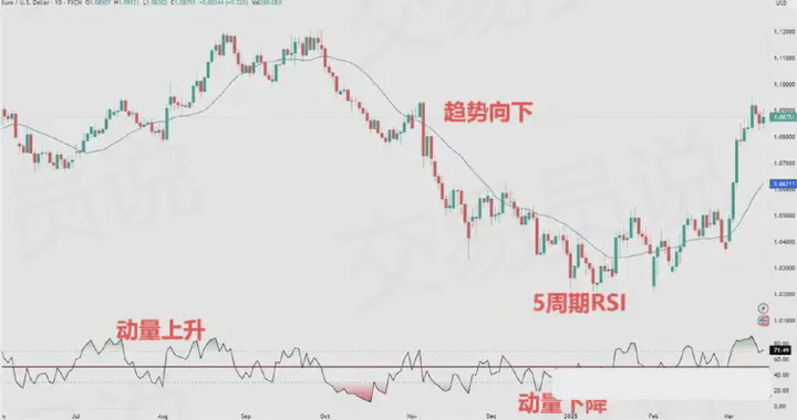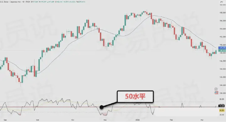 2. RSI signal: confirm that the RSI has peaked above 50 and started to reverse downward.