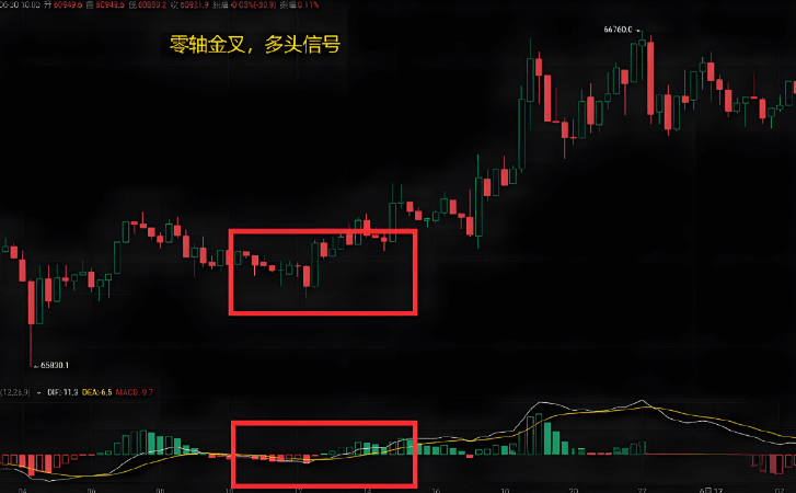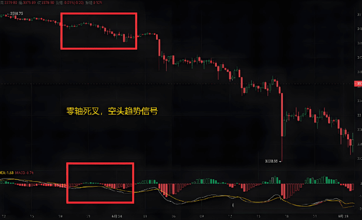 The MACD zero axis can be seen as the boundary line between bullish and bearish. Below the zero axis indicates a bearish trend, and bullish signals should be avoided. Even if you enter, it should be with a small position, quickly in and out. Bearish signals can be held in trend. Conversely, above the zero axis. The golden crosses and death crosses formed near the zero axis are referred to as zero axis golden crosses and zero axis death crosses, which are more effective bullish and bearish signals.