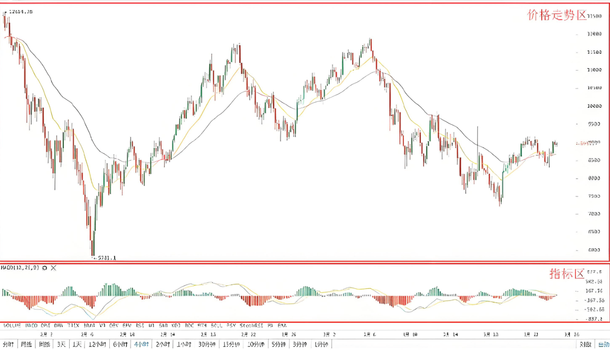 Looking at the entire analysis chart, it is mainly divided into price trend area and indicator area. We will gradually lay the foundation for everyone; the main content of the first sharing is the MACD indicator.